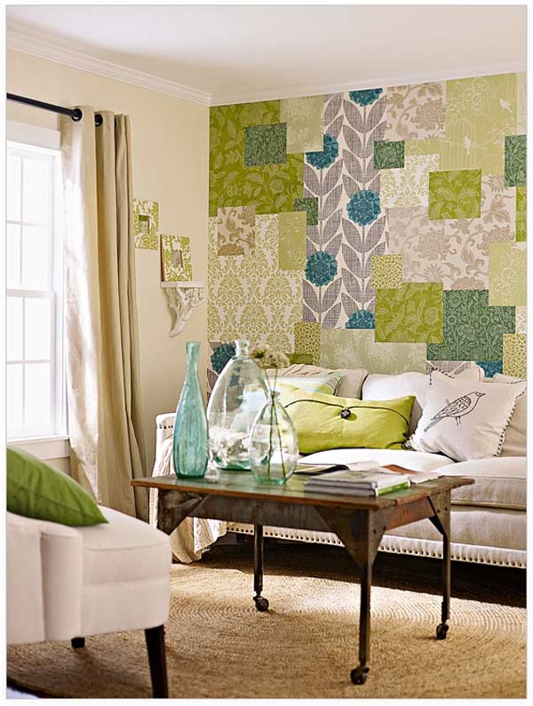 Za ovaj patchwork potrebno vam je nekoliko rola različitih tapeta. Poigrajte se bojama i motivima, ali pazite da opet sve bude na neki način skladno. Ako imate otpada polijepite ih i na okvire za fotografije.