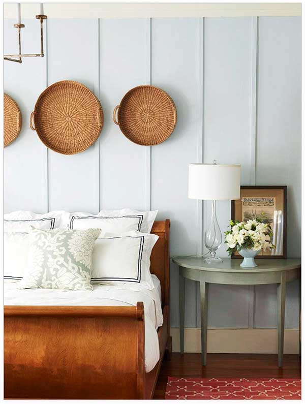 Ručno pletene košarice raznih oblika na zidu će se savršeno uklopiti u country ili shabby stil.