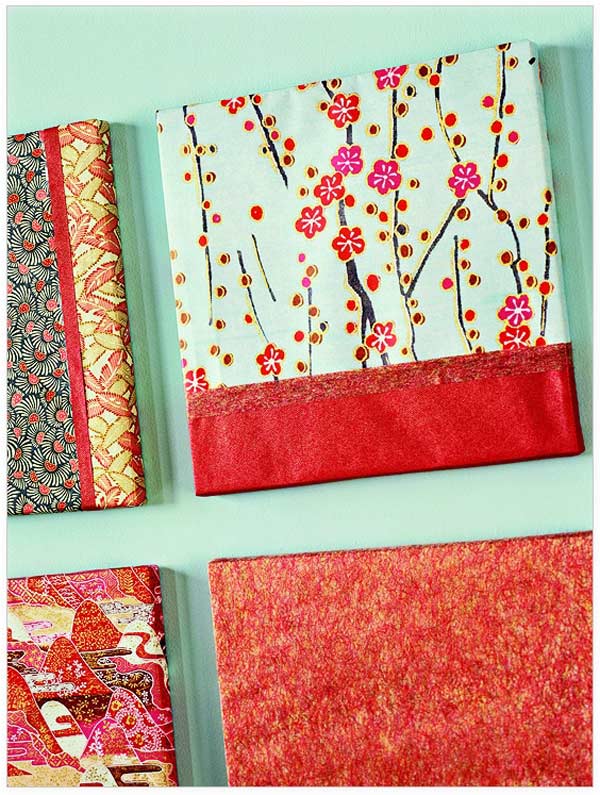 Ove jednostavne “slike” napravljene su od cijenjenog japanskog washi papira. Ovaj papir u japanskoj tradiciji spada gotovo u umjetnost i nije ga baš kod nas lako pronaći. U papirnicama ili hobby centrima pokušajte pronaći neki drugi kvalitetniji (npr.rižin) koji bi vam motivima bio zanimljiv. Presvući možete prazna platna za slikanje ili nekakve druge zanimljive plosnate kutije istih ili različitih oblika (npr. kutije za pizze!)